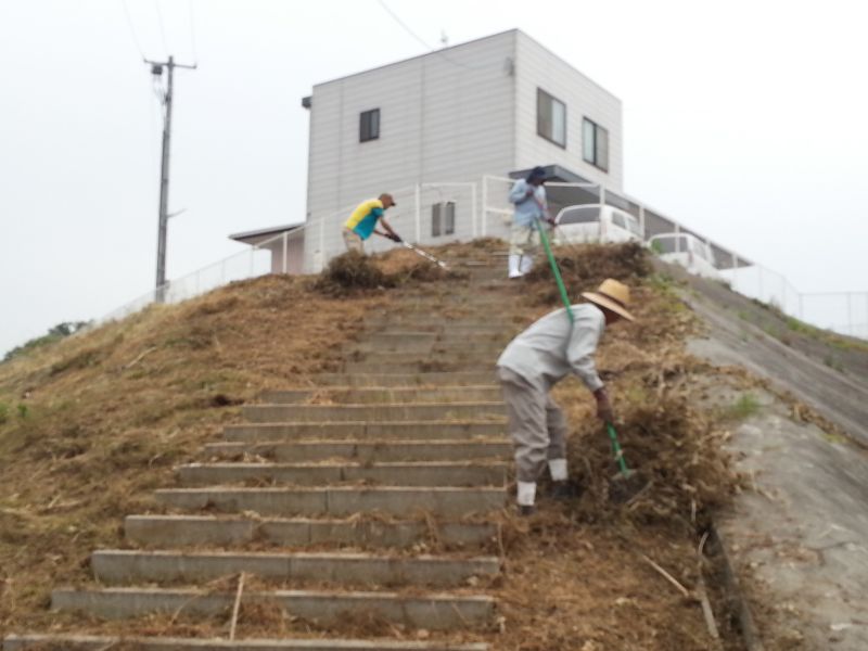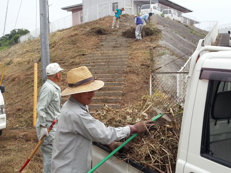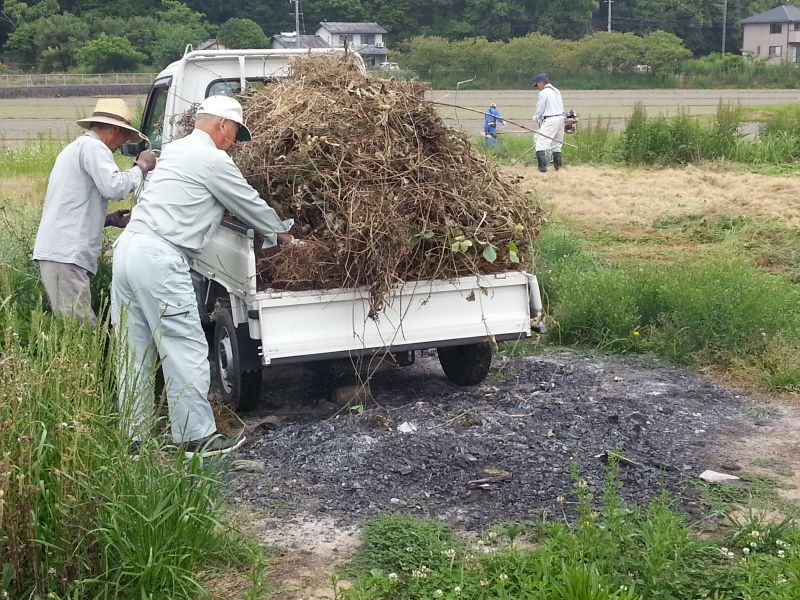 周辺一帯で刈り取った草を集めていただきました。